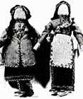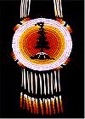 The Iroquois Indians did not wear long headdresses like the Sioux. Iroquois men wore a gustoweh, which was a feathered cap with different insignia for each tribe (the headdress worn by the man in this picture has three eagle feathers, showing that he is Mohawk.) Iroquois women sometimes wore special beaded tiaras. Iroquois warriors often shaved their heads except for a scalplock or a crest down the center of their head (the style known as a roach, or a "Mohawk.") Sometimes they augmented this hairstyle with splayed feathers or artificial roaches made of brightly dyed porcupine and deer hair. Here are some pictures of these different kinds of American Indian headdresses. Iroquois Indian women only cut their hair when they were in mourning, wearing it long and loose or plaited into a long braid. Men sometimes decorated their faces and bodies with tribal tattoos, but Iroquois women generally didn't paint or tattoo themselves.